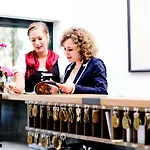 Fantastisch personeel, fijn bed en gezellige kamers. Een lounge, koffie en een keuken in de kamer vond ik fijn. Ik kreeg een superlekker ontbijt met champagne en een omelet station en mousserende wijn. Aangename locatie, 15 minuten lopen naar het Rheingauer Weinmuseum.